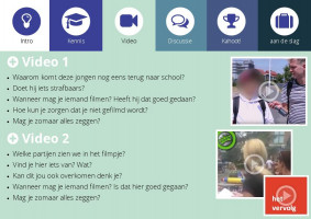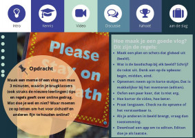 In de opdracht die op de les volgt maken leerlingen in groepjes van drie ongeveer, een meme of een vlog die gebruikt kan worden om brugklassers, en straks de nieuwe leerlingen, wegwijs te maken: hoe gaan wij hier met elkaar om op school? Hoe houden we het voor iedereen fijn online?